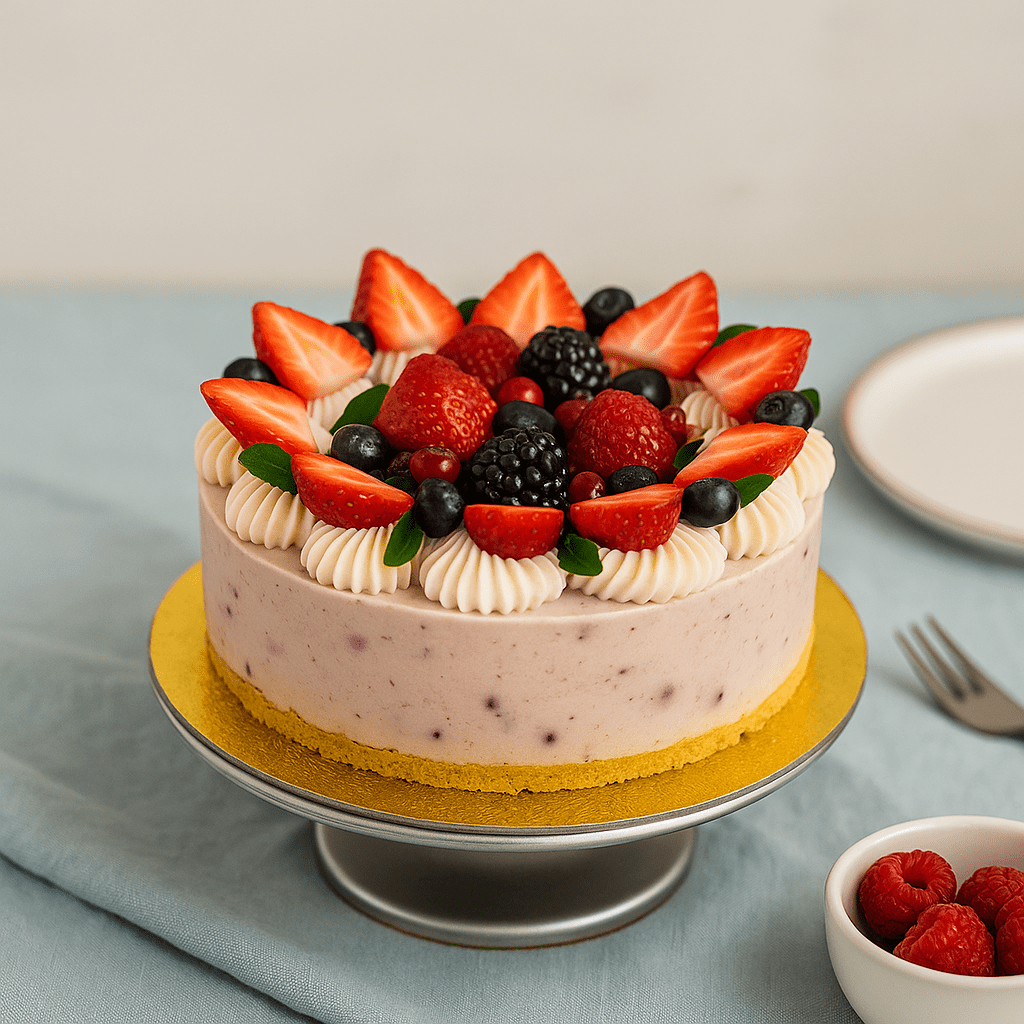 - Queso crema generoso con frutos rojos